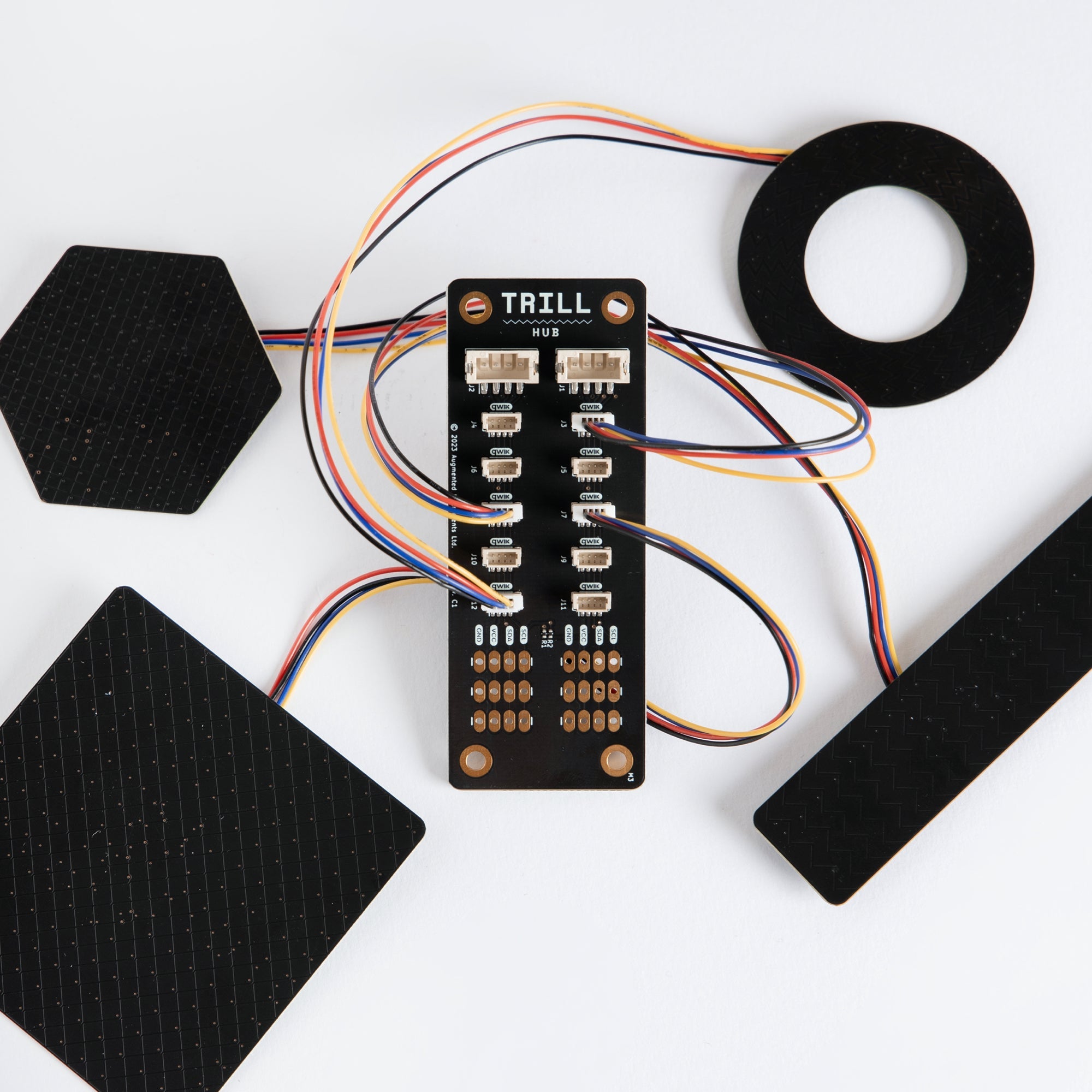 Trill Hub is a handy breakout board that provides a single point of connection for all your Trill sensors (and other I2C devices).